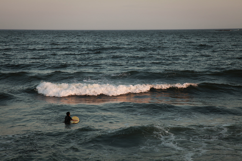 湘南の夕焼けは、写真を撮るには最適の場所だ。 暮れなずむ夕日を背景に、想い想いの時を過ごす。 -