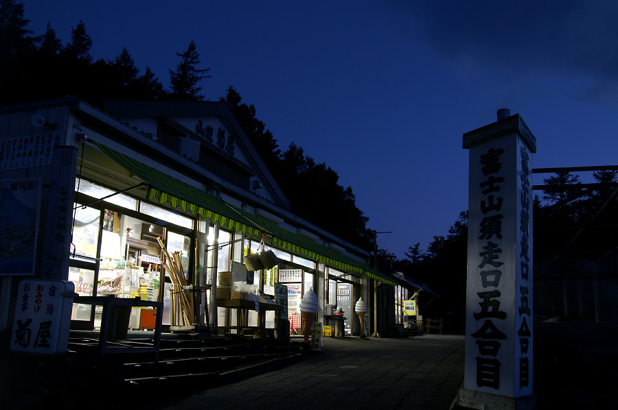 須走口五合目は売店もまだ開いておらず真っ暗で怖い。独りでこないで良かった。