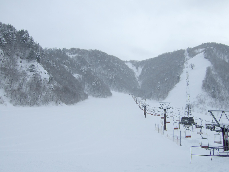 開場前なのか、まだ誰も滑っていない平湯温泉スキー場の脇を徒歩で進む。