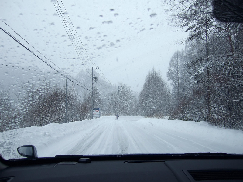 ほどなく路面が見えないほどに降り積もり、車線が消え追い越しが恐い。